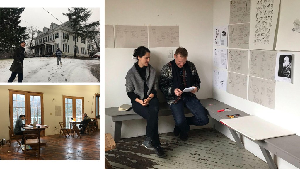 Images and text on this site show process work — initial ideas and drafts created as we move toward an outcome: an exhibition, a book, a performance. In November 2019, we completed a residence at Arts Letters and Numbers, Averill Park, New York, to consolidate our ideas and spent longer than a few hours over Skype in each other’s presence.